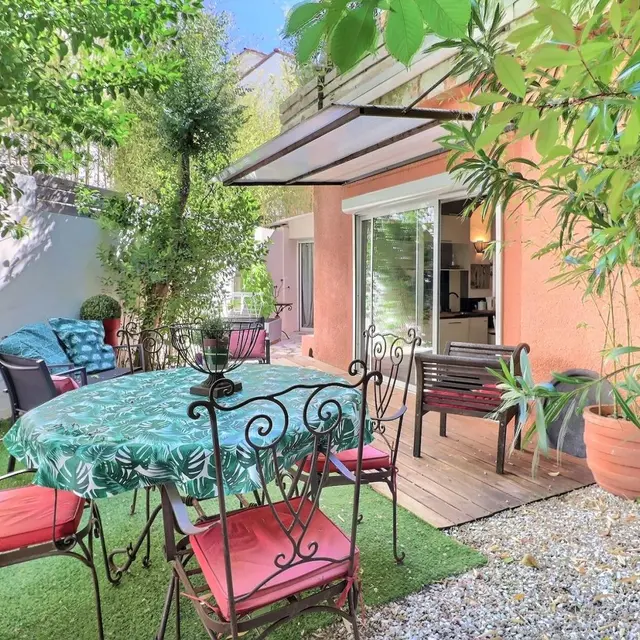 Cet adorable appartement est idéalement situé pour découvrir les merveilles d'Aix-en-Provence, à seulement 400m du centre historique. Il bénéficie d'une très agréable terrasse privative de 40 m² environ arborée (jardinet), avec salon de jardin et espace détente. Les propriétaires habitent l'appartement au-dessus, l'accès extérieur aux 2 appartements est commun, mais chaque appartement dispose de sa propre entrée. Pas de vis-à-vis sur la terrasse. Atypique, ce bel appartement lumineux se découpe en 3 niveaux. Au rez-de-chaussée (niveau principal) :