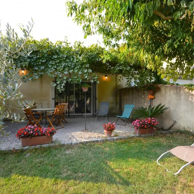 Gîte à la campagne, au calme, dans un mas provençal, sur un domaine de 8 hectares, à proximité des Alpilles. 2 autres gîtes sur place (sur l'autre côté du bâtiment), "La Roubine" 13G311 et "La Jasse" 13G310. Possiblité de randonnées pédestres, vélos et VTT sur terrain plat ou collines. Ombragée par la treille, la terrasse vous permettra en saison de profiter de sa fraicheur bienveillante et de goûter au raisin dès que ce sera le moment !