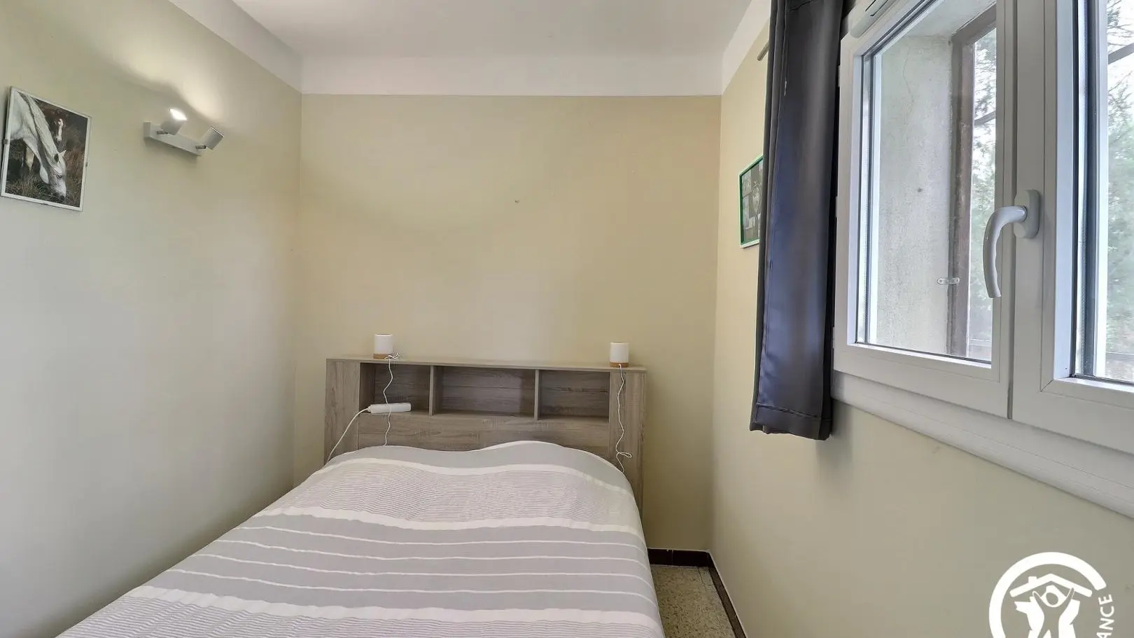- Petite chambre avec 1 lit pour 2 personnes 140x190cm et dressing.