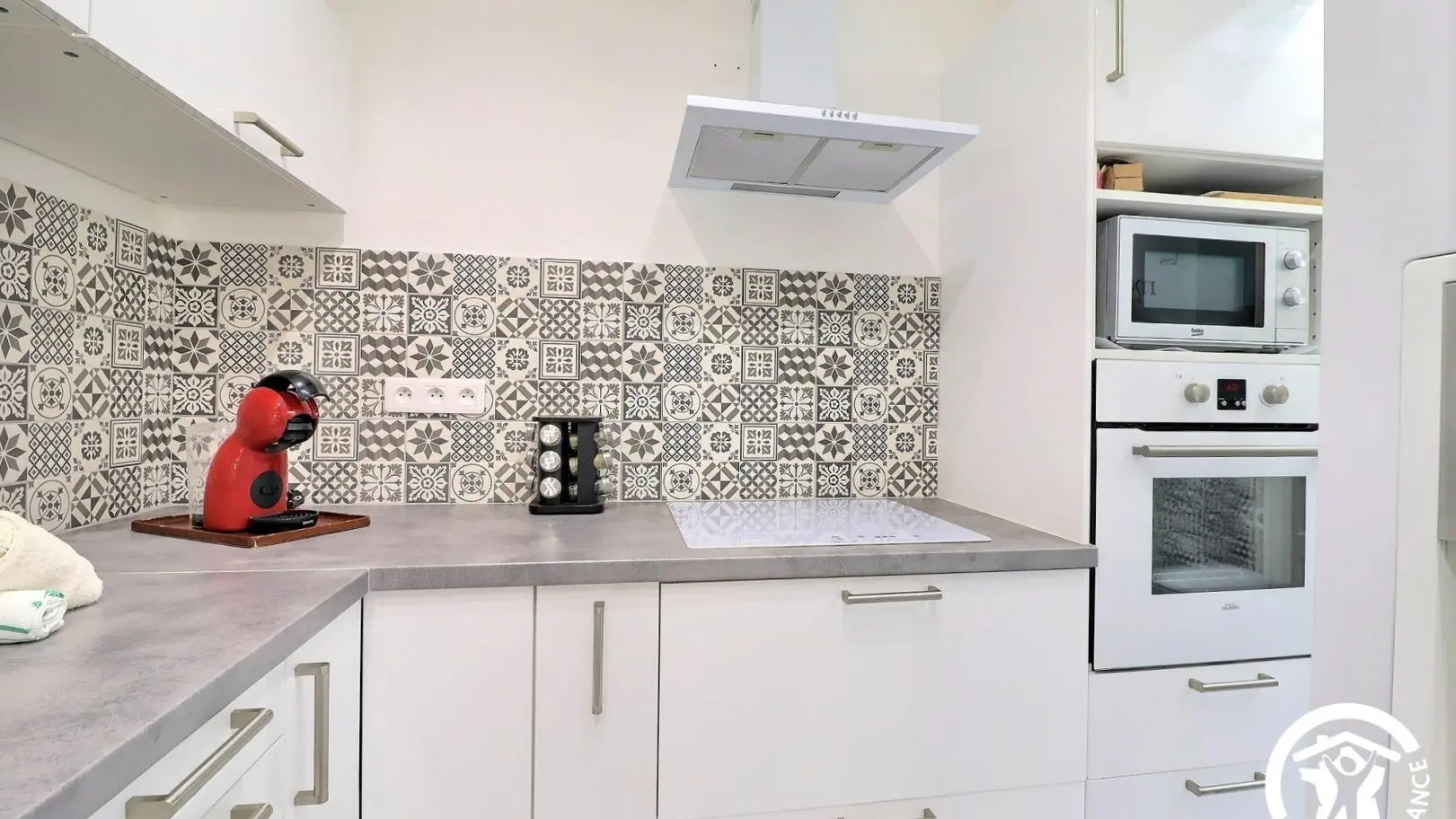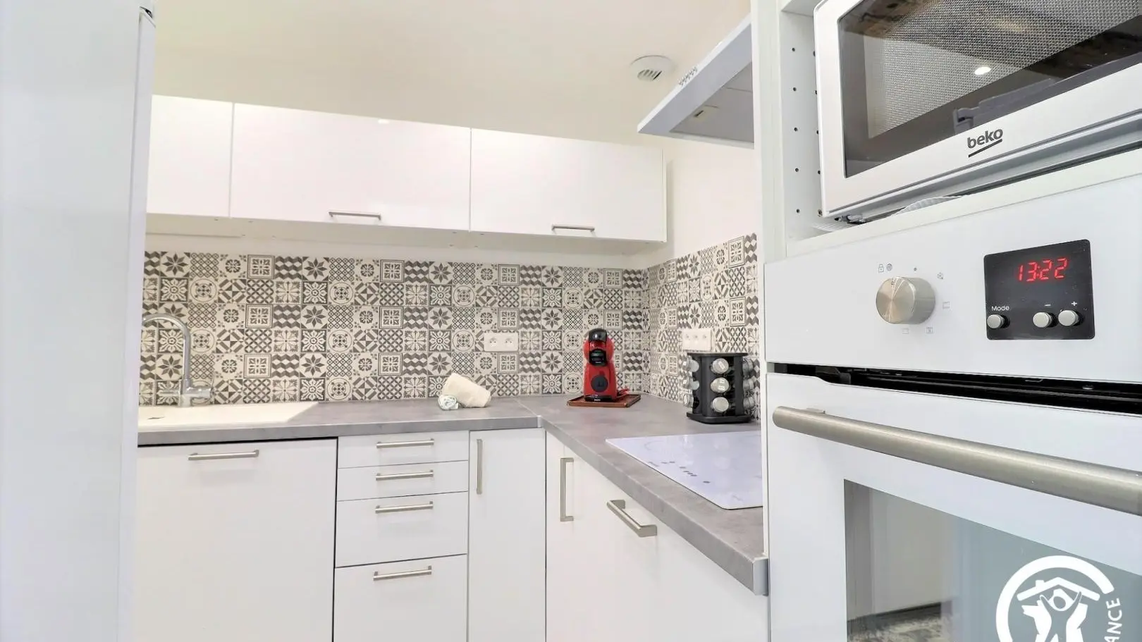 - Séjour avec canapé confortable électrique de relaxation, grande TV écran plat 139cm, chaîne hifi (ampli avec radio / home cinéma). Espace repas avec table à rallonges pouvant accueillir 6 convives. Cuisine équipée d'angle ouverte sur le séjour avec plaque 3 feux vitrocéramique, hotte, lave-vaisselle, réfrigérateur/congélateur américain avec distributeur d'eau et de glaçons, micro-ondes, four et cafetière à dosettes Dolce Gusto. Puits de lumière au bout de la cuisine.