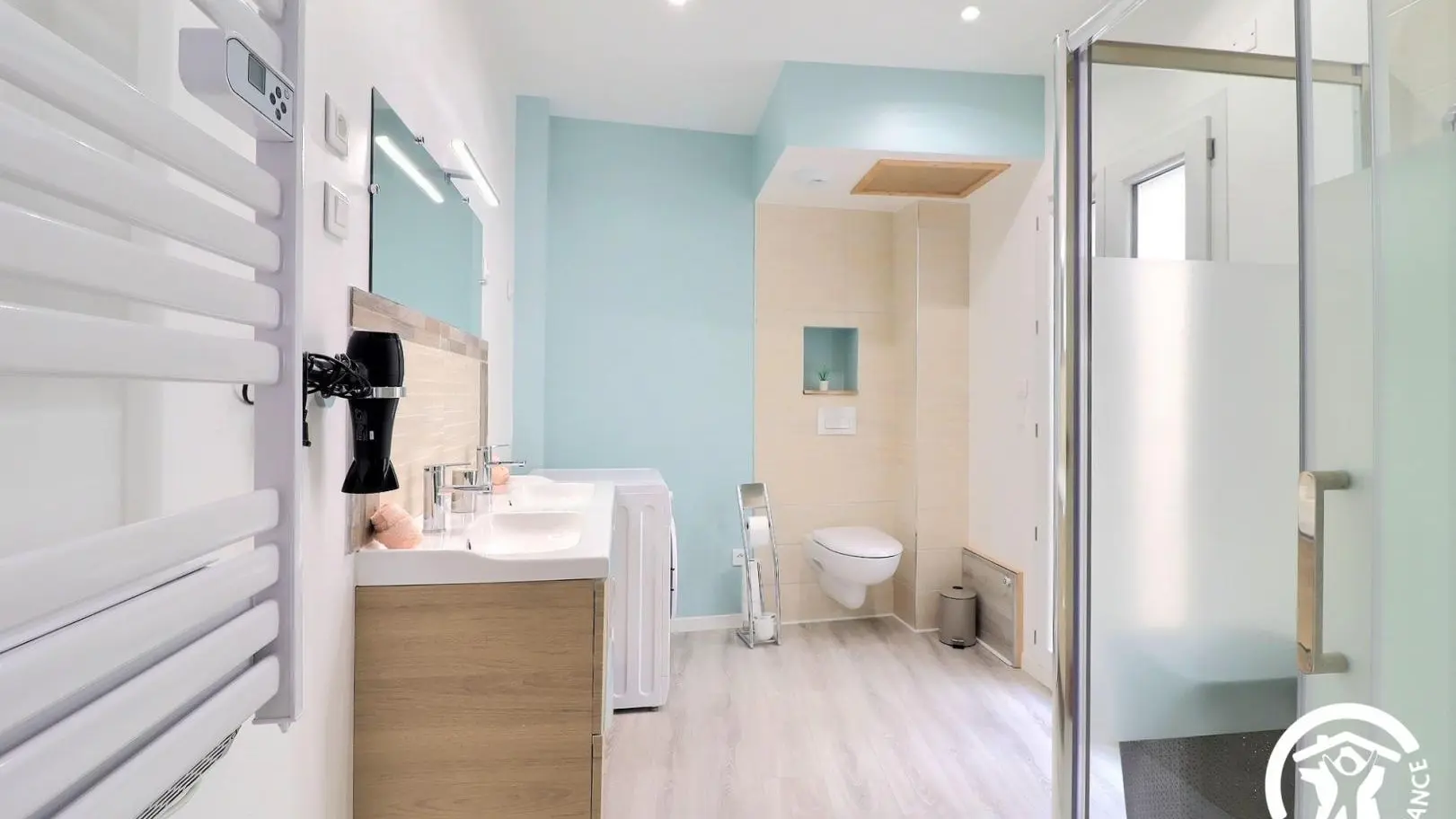 - Salle d'eau privative pour cette chambre avec vasque, WC, douche type italienne 80x80cm et porte-serviettes chauffant.