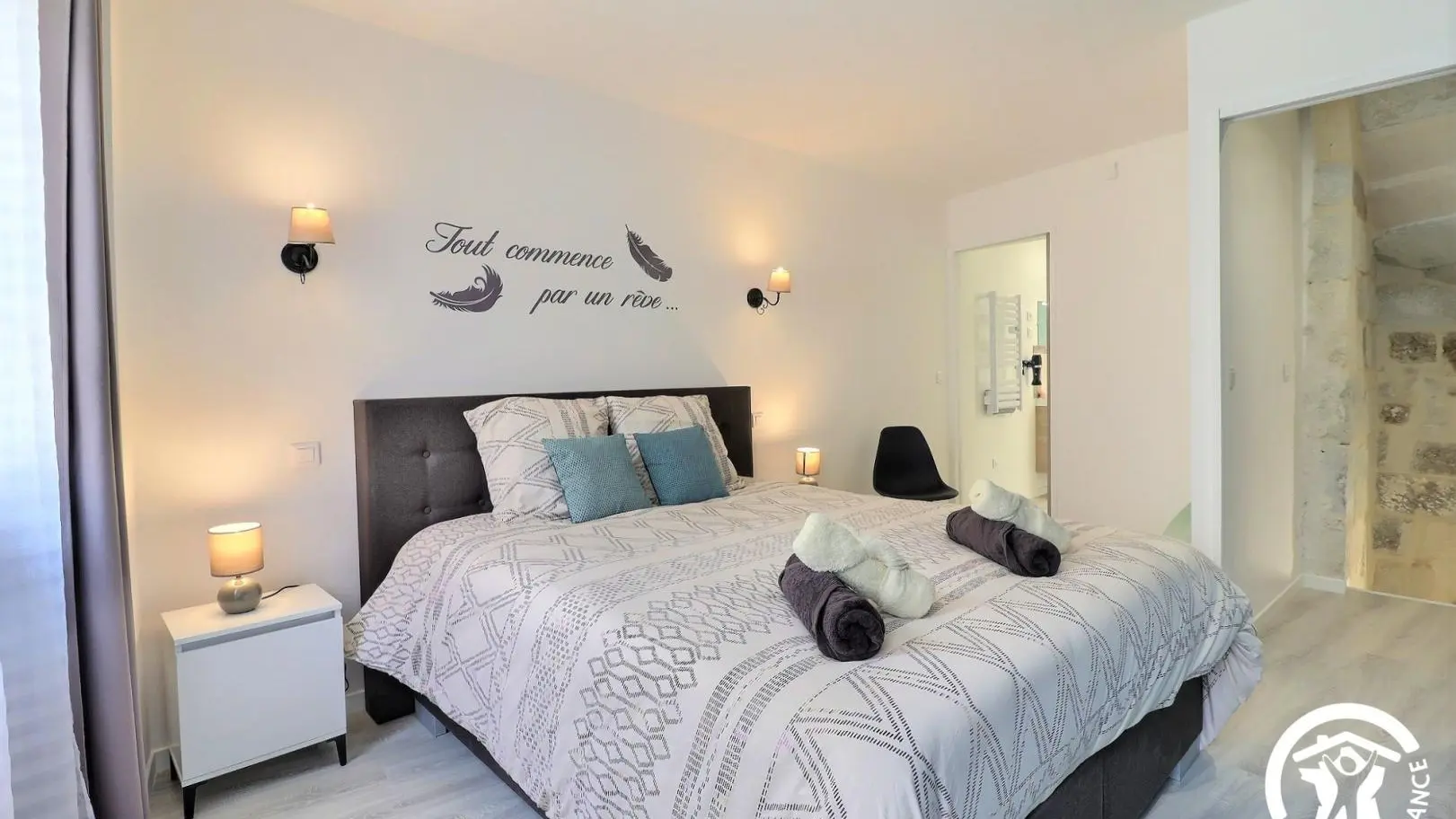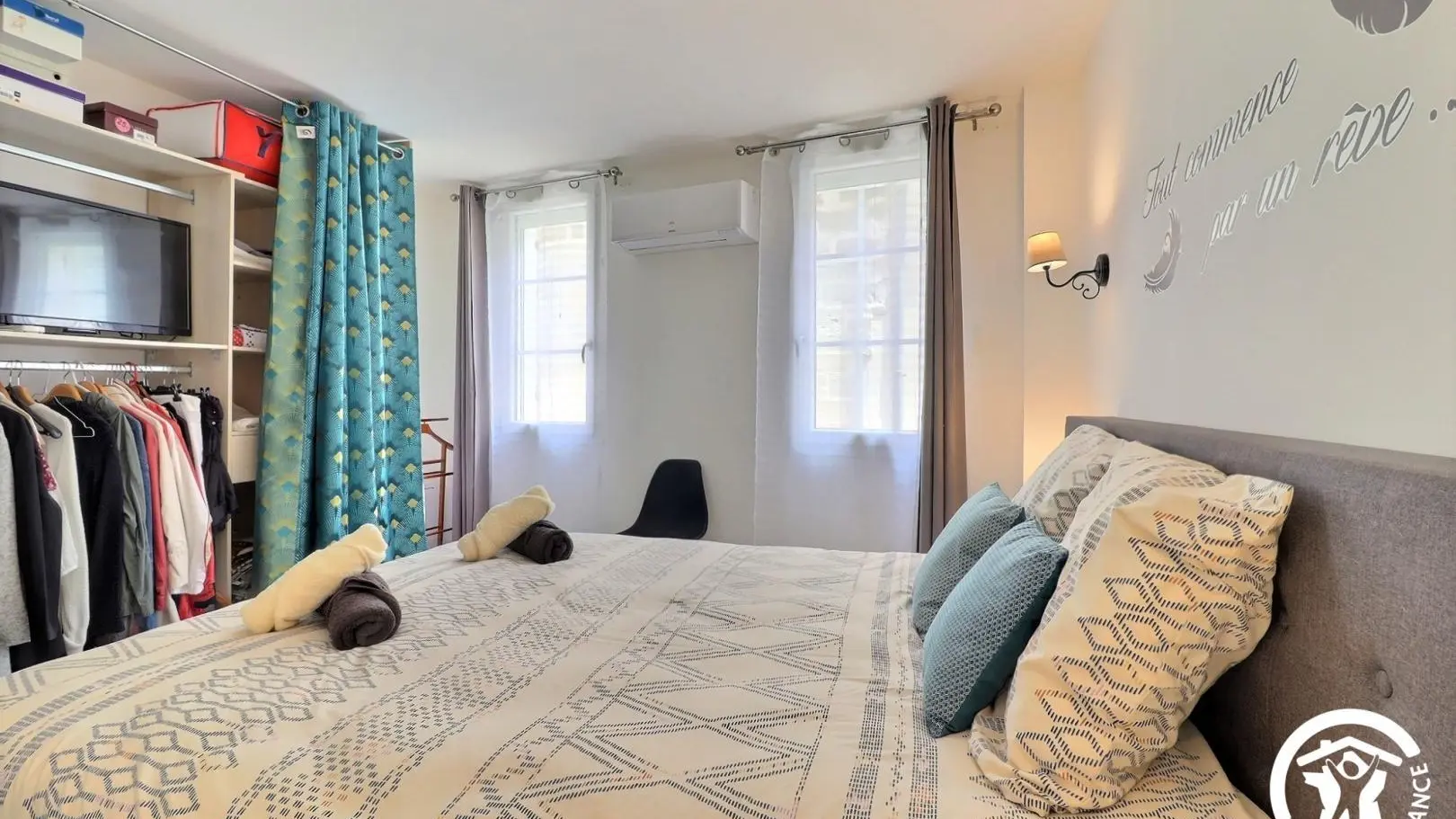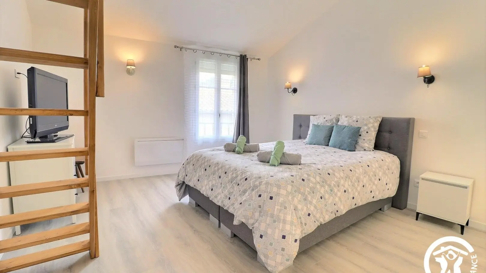 - 1ère chambre avec un lit 2 personnes 160x200cm, grand dressing avec TV écran plat.