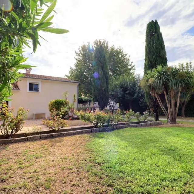 - WC indépendant. Le jardin, entièrement clos, est composé d'un patio, d'un espace enherbé idéal pour jouer au foot en famille, d'un espace parking (4/5 véhicules peuvent stationner), d'une terrasse abritée sous la treille, barbecue et plancha gaz.