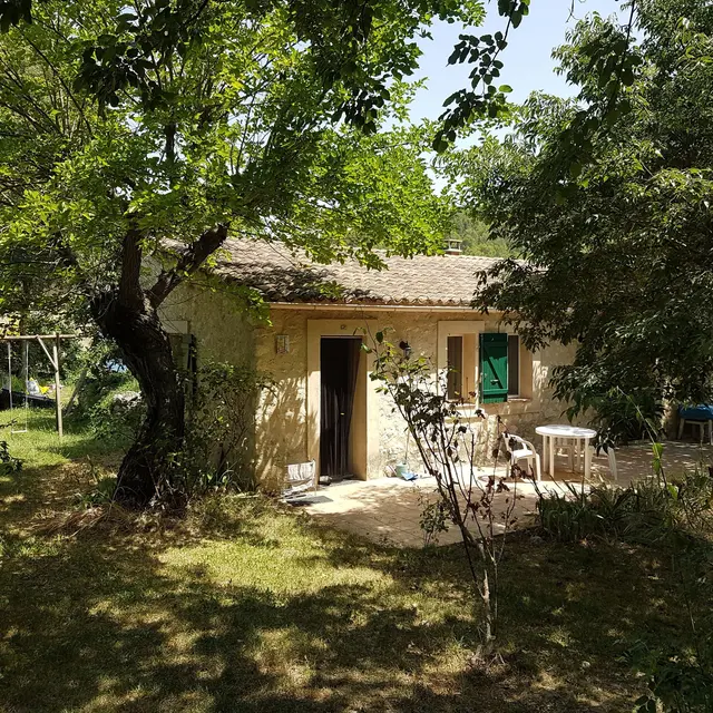 Cuisine américaine, 1 chambre 2 personnes, coin TV, WC séparés, salle de douche. Belle terrasse plein sud avec jardinet privatif arboré. Accessible par un chemin de terre de 500m dans un hameau familial en colline au sein d'une exploitation agricole bio, à 3km du village.