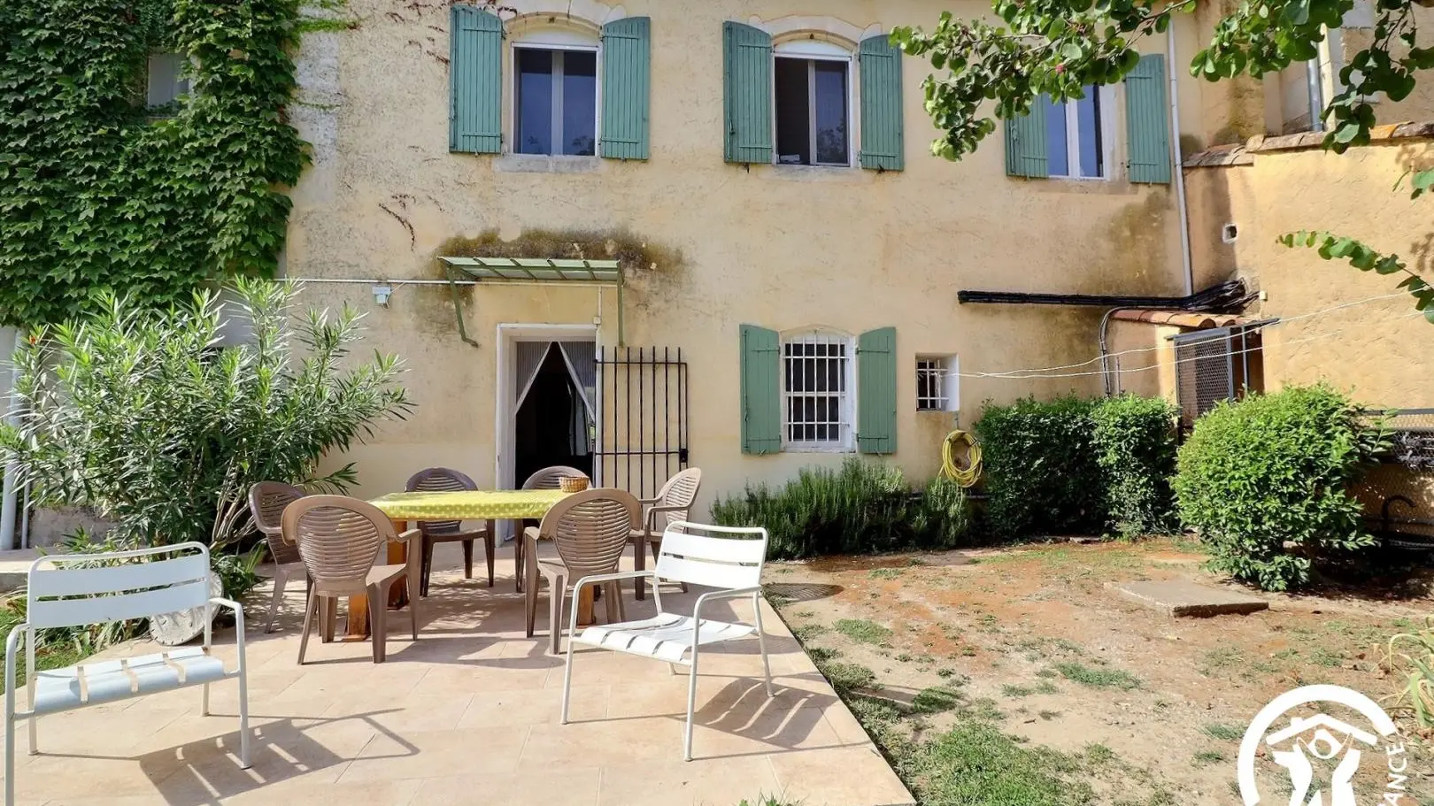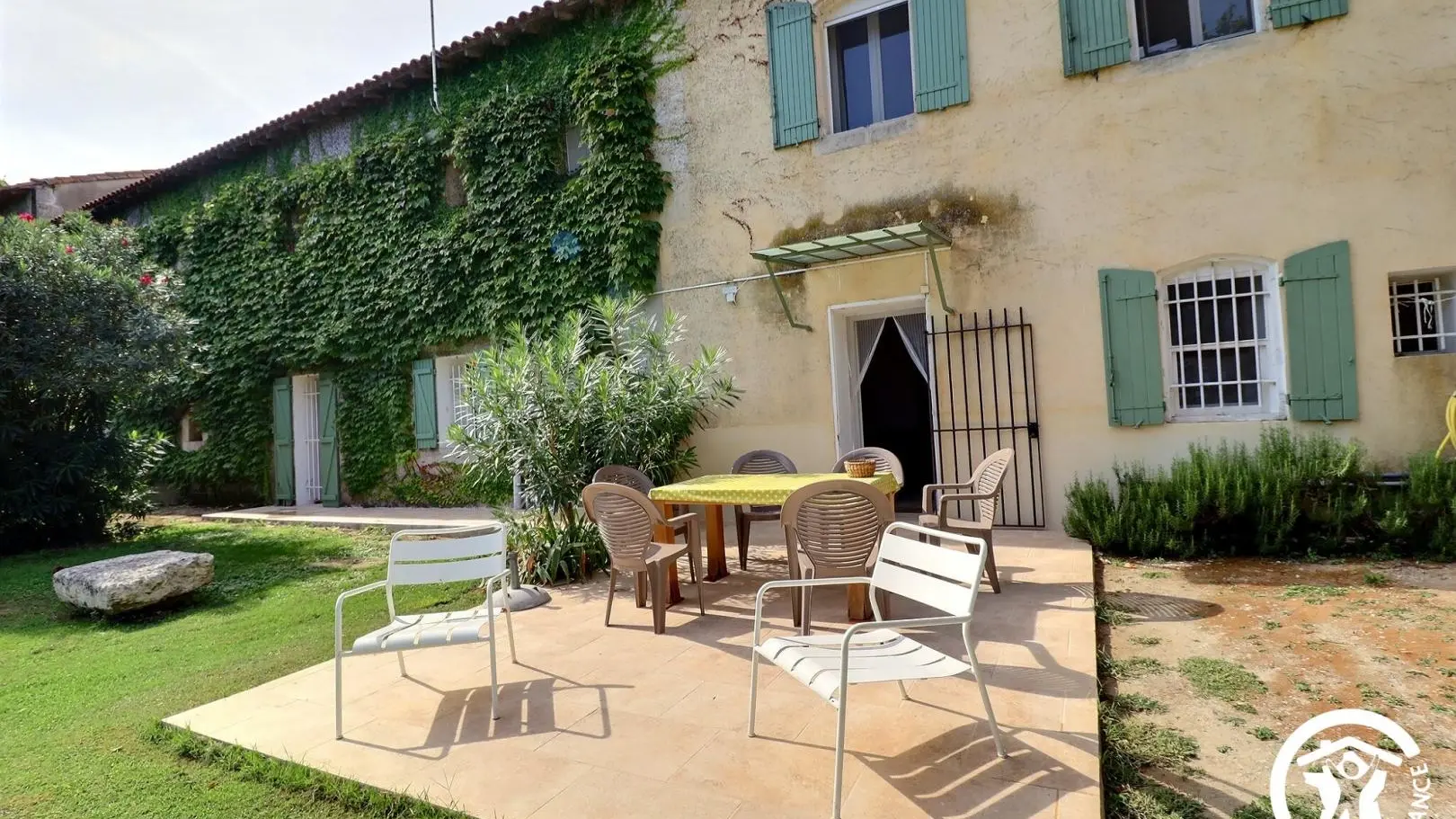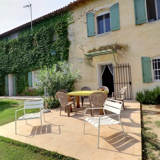 Sur place 5 gîtes répartis sur tout le mas, en façade sud et nord : le gîte Le Pigeonnier 13G791005 - le gîte Terrasse Sud 13G200419 - le gîte La Pergola 13G870822 - le gîte Arche Sud 13G281155. En rez de chaussée : pièce de vie avec coin détente, télévision écran plat. Cuisine indépendante (plaques vitrocéramiques, four, micro ondes, frigo/congélateur). 2 chambres communicantes : 1 chambre avec lit 2 personnes (140x190), 1 chambre avec 2 lits 1 personne (90x200cm). Salle d'eau. WC indépendant. A l'étage : escalier en colimaçon qui aboutit à la chambre 2 personnes (140x190). Salle d'eau/WC privative. Chauffage central et électrique (forfait 60€/semaine). Buanderie commune avec la propriétaire (lave linge). Wifi haut débit. Espace privatif non clôturé avec salon dejardin, vaste jardin commun à l'autre gîte donnant sur parc avec plan d'eau. Barbecue commun. Parking commun aux 5 gîtes. Ménage sur demande (50€). Randonnées à partir de la propriété.