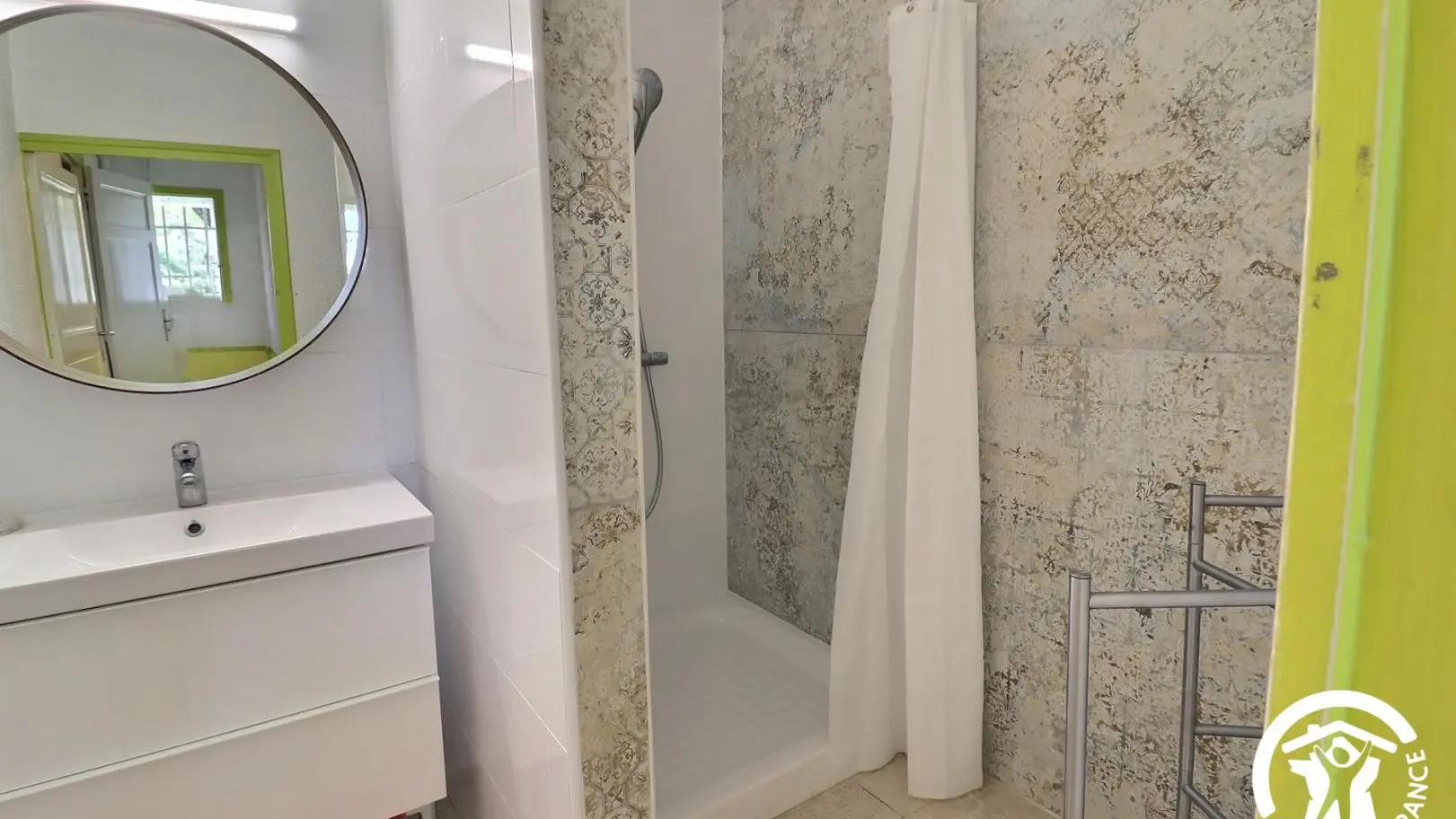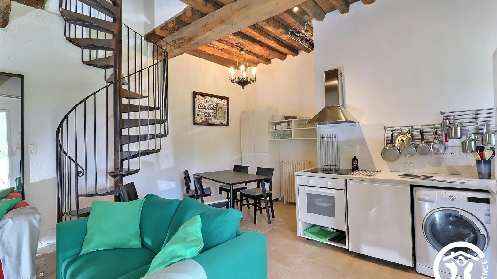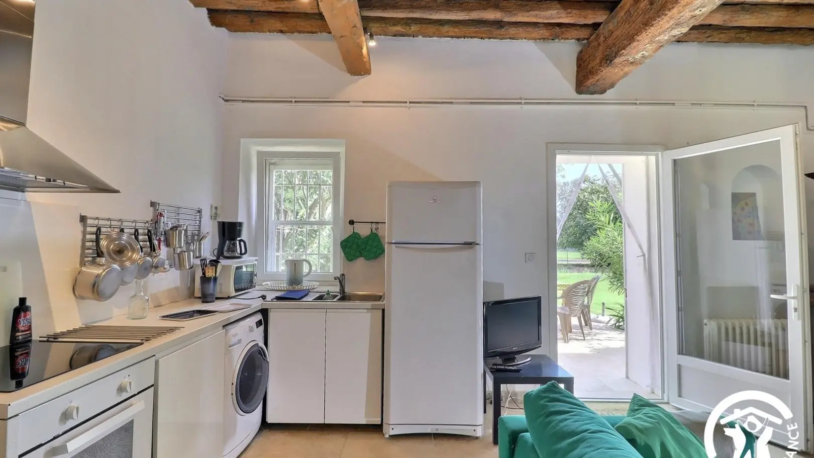 Sur place 5 gîtes répartis sur tout le mas, en façade sud et nord : le gîte Le Pigeonnier 13G791005 - le gîte Terrasse Sud 13G200419 - le gîte La Pergola 13G870822 - le gîte Arche Sud 13G281155. En rez de chaussée : pièce de vie avec coin détente, télévision écran plat. Cuisine indépendante (plaques vitrocéramiques, four, micro ondes, frigo/congélateur). 2 chambres communicantes : 1 chambre avec lit 2 personnes (140x190), 1 chambre avec 2 lits 1 personne (90x200cm). Salle d'eau. WC indépendant. A l'étage : escalier en colimaçon qui aboutit à la chambre 2 personnes (140x190). Salle d'eau/WC privative. Chauffage central et électrique (forfait 60€/semaine). Buanderie commune avec la propriétaire (lave linge). Wifi haut débit. Espace privatif non clôturé avec salon dejardin, vaste jardin commun à l'autre gîte donnant sur parc avec plan d'eau. Barbecue commun. Parking commun aux 5 gîtes. Ménage sur demande (50€). Randonnées à partir de la propriété.