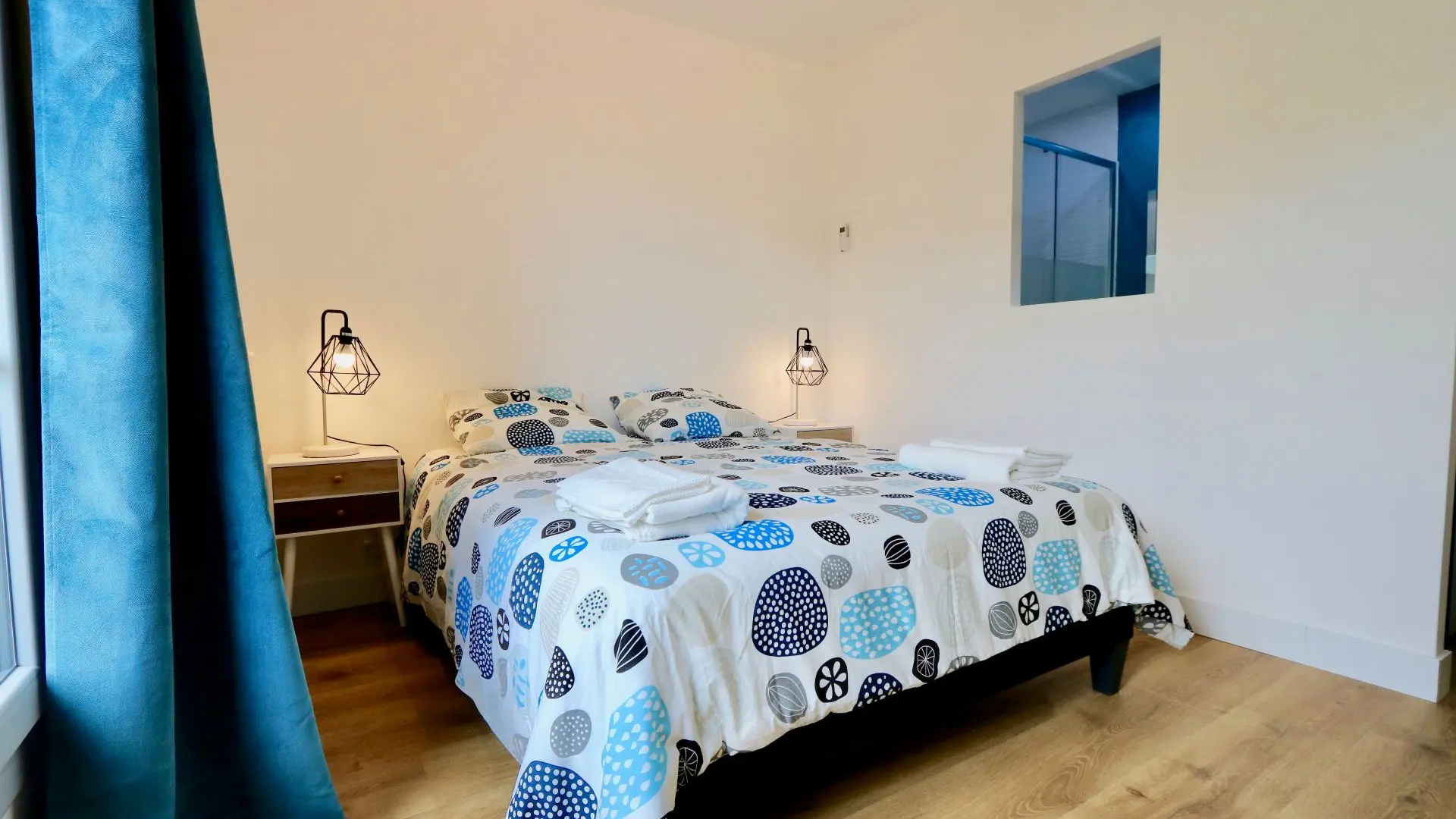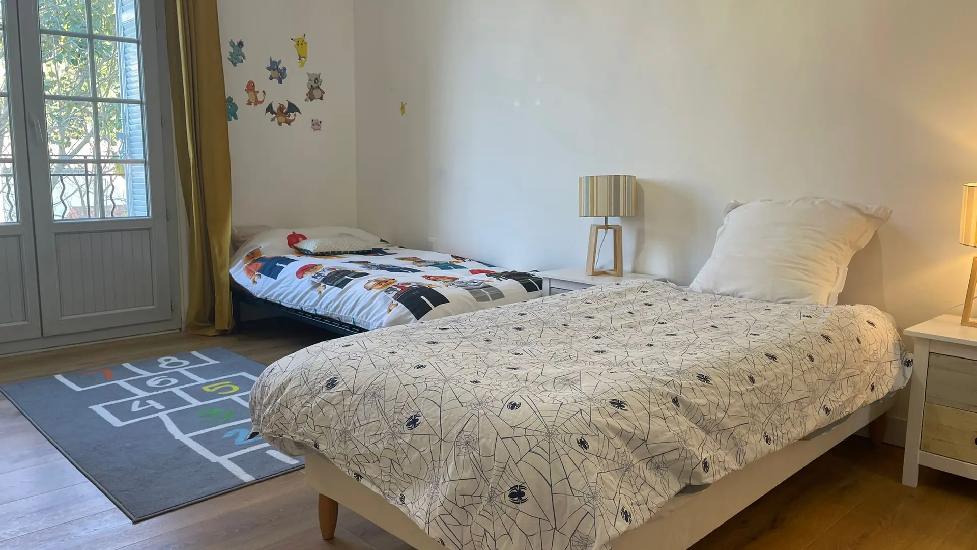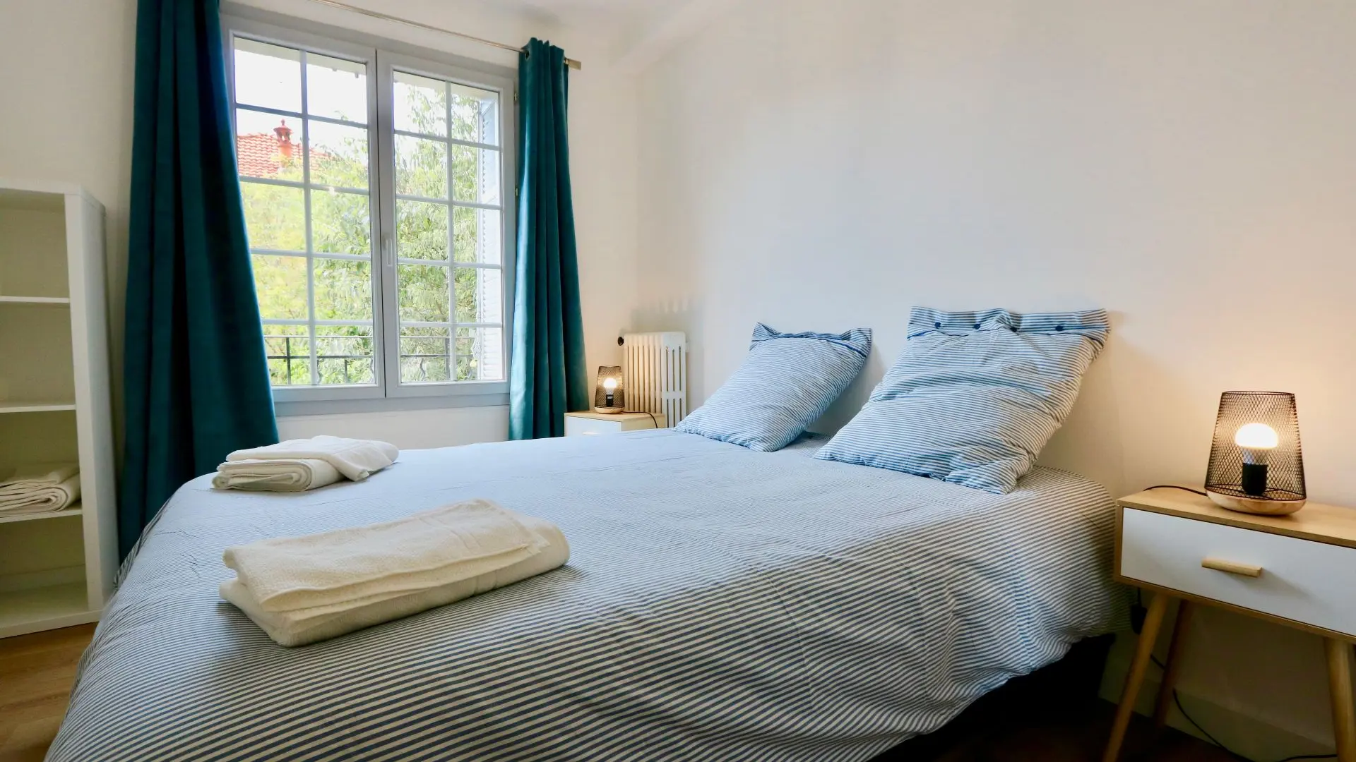 L'espace nuit est divisé en trois chambres (lit de 160X200 dans les trois chambres), dont une chambre parentale avec une salle d'eau rénovée et moderne. La salle d'eau a été refaite de manière moderne et design et dispose d'une double vasque et d'un lave-linge (serviettes fournies). L'appartement est entièrement climatisé et un garage privé est mis à disposition des locataires.