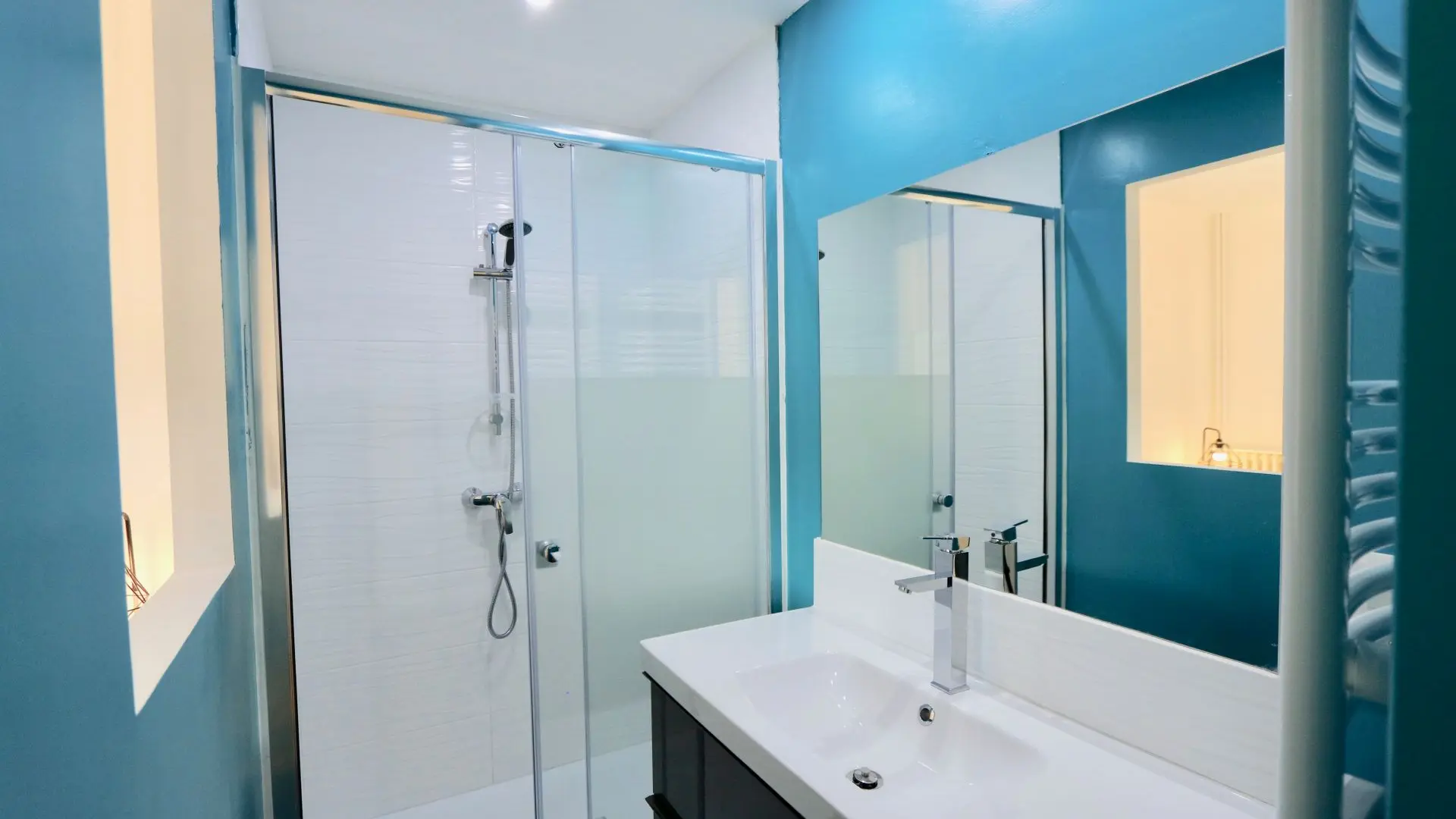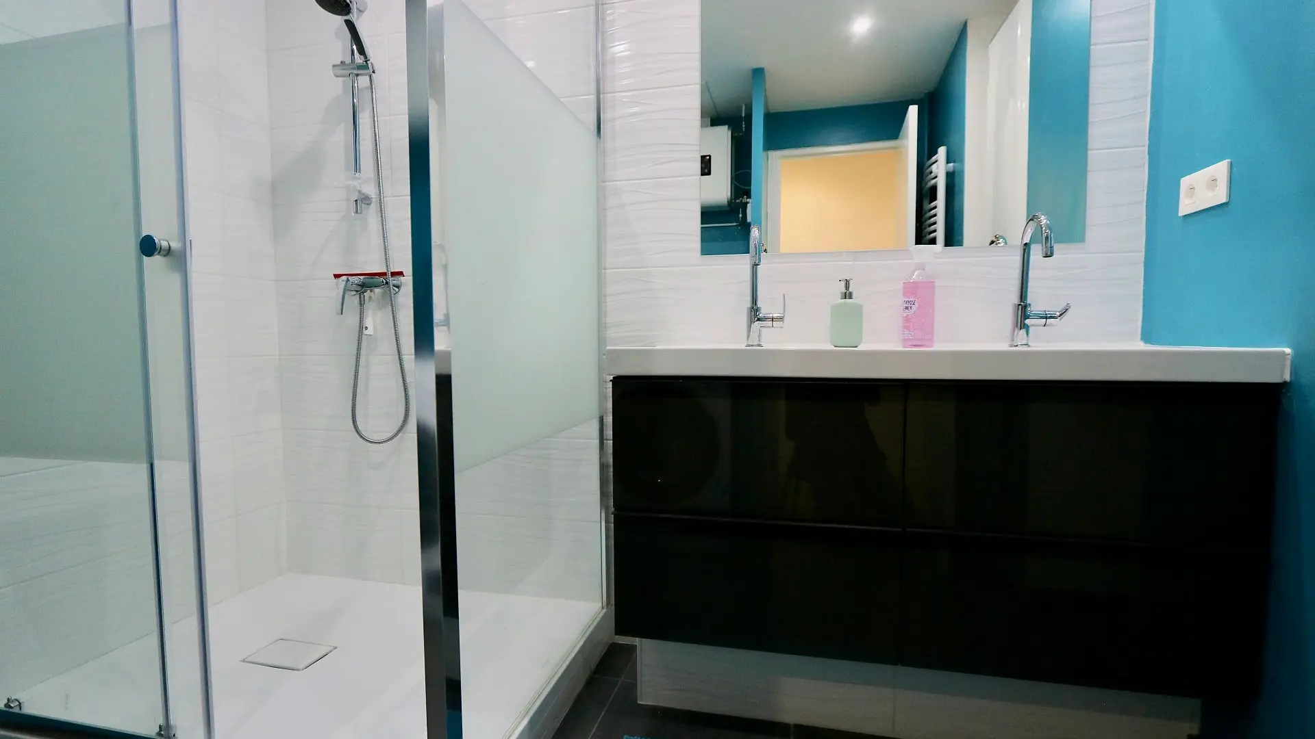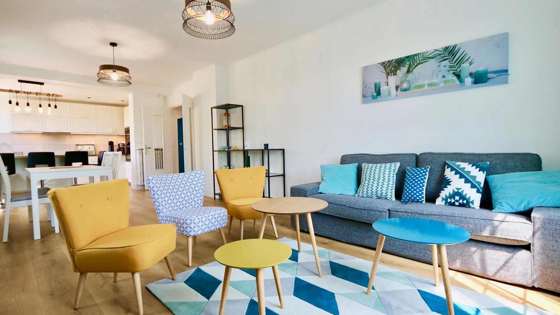 L'espace nuit est divisé en trois chambres (lit de 160X200 dans les trois chambres), dont une chambre parentale avec une salle d'eau rénovée et moderne. La salle d'eau a été refaite de manière moderne et design et dispose d'une double vasque et d'un lave-linge (serviettes fournies). L'appartement est entièrement climatisé et un garage privé est mis à disposition des locataires.