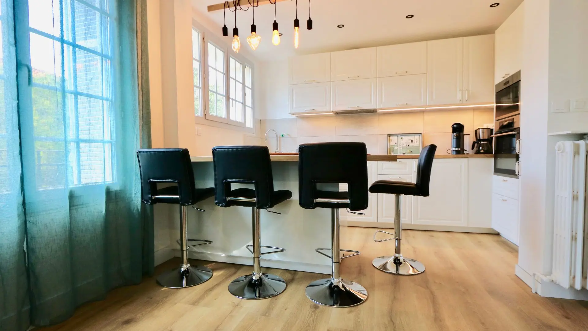 Ce bien propose une belle pièce à vivre baignée de lumière avec TV écran plat et Wi-Fi. La cuisine ouverte sur le séjour à été rénovée et est entièrement équipée (lave-vaisselle, four traditionnel, réfrigérateur/congélateur, cafetière électrique, bouilloire électrique et grille-pain).