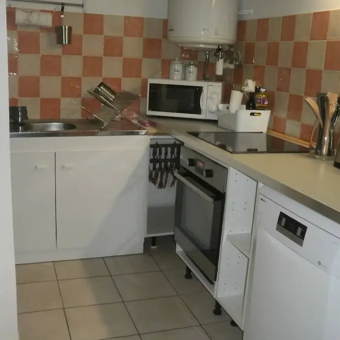 Logement indépendant. En haut, la chambre en mezzanine (1 lit double + 1 lit simple). Salon, salle d'eau (douche) et cuisine en bas, avec lave-vaisselle, micro-onde, four...) et lave-linge, télévision, climatisation, wifi, parking gratuit dans la rue à 10 mètres.