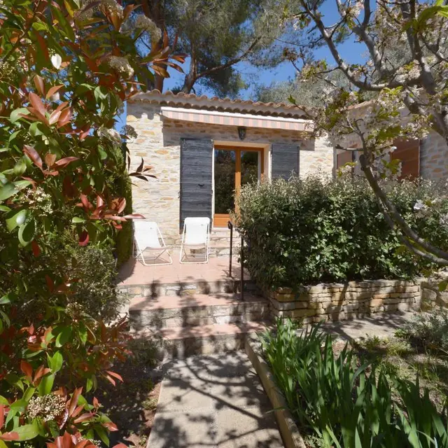 Au coeur de la propriété, gîte indépendant aménagé dans un écrin de verdure, idéal pour amoureux de la nature. Second gîte sur place, le 13G100514 "Les Oiseaux". Décor authentique et respect de l'environnement. Pièces lumineuses. Rez de Chaussée : 1 chambre (climatisée) avec lit 2 personnes et communicante à la salle d'eau/WC fermés. Petit espace salon en mezzanine équipé d'une chaine hi-fi. Collection de CD musique classique et variétés. Séjour/salon/cuisine américaine entièrement équipée. TV écran plat. Terrasse ensoleillée de 16 m² avec salon de jardin. Store électrique de protection. Vue dégagée sur collines, jardin privatif clos et arboré de 250 m². Accès internet WiFi Gratuit. Parking privé et sécurisé dans la propriété de 4000 m² clôturée. Ménage fin de séjour à la demande en supplément. Lit bébé du type parapluie sur demande. En basse saison, séjour possible à partir de 4 nuits. Animaux non admis dans ce gîte. Possibilité d'accueillir une personne supplémentaire en mezzanine (lit 90cm): 15€ par nuit.