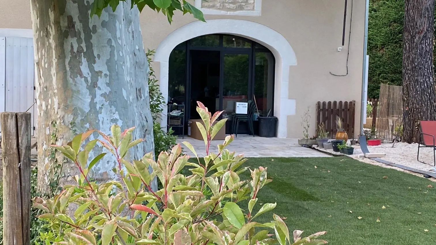 Dans une partie de mas écorenovée en 2024, le gîteau cœur d’une exploitation familiale arboricole éco-responsable