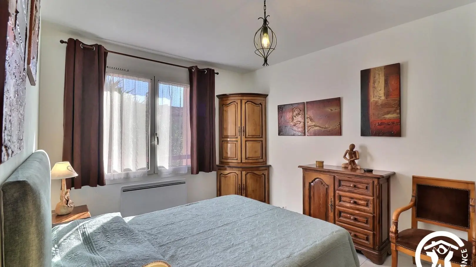•Chambre avec 1 lit 2 personnes 140x190cm, penderie et fauteuil.