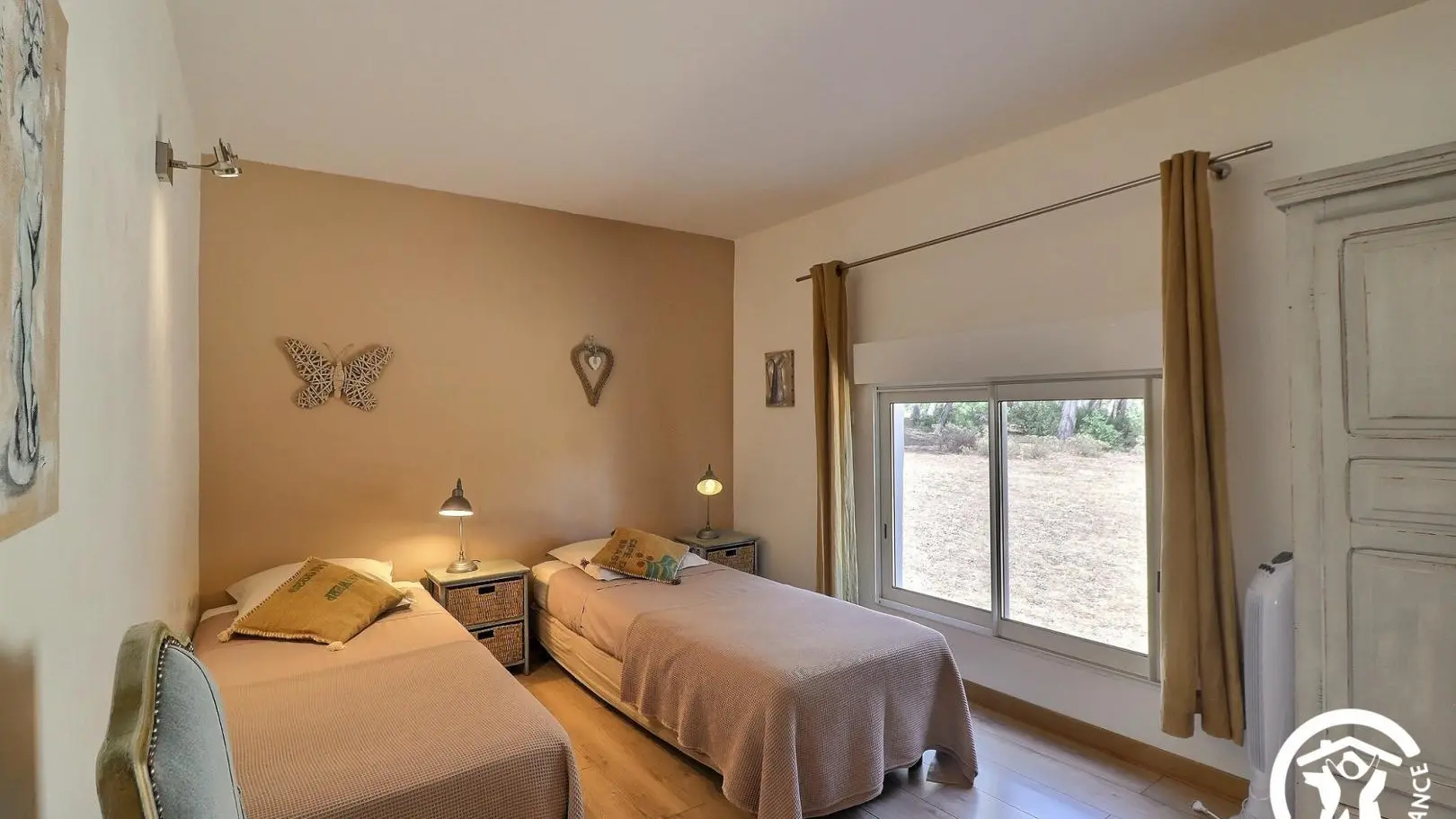 - Seconde chambre avec 2 lits 80x200 cm modulables en lit 160x200 cm, armoire et console.