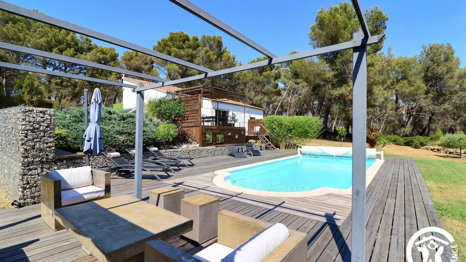 Le gîte Les Lavandines est une maison indépendante nichée sur un hectare de terrain clos, avec piscine privative, terrain de pétanque, table de ping-pong et terrasse ombragée pour profiter pleinement des douces soirées provençales.