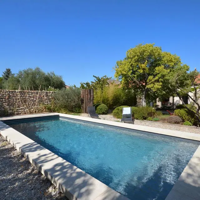 Dans le charmant village d'Eygalières, sur une petite route tranquille qui conduit au pied des sentiers de randonnée dans les Alpilles, très jolie maison semi-indépendante sur terrain commun clos (portail avec télécommande). Piscine privative (4 x 8 m, profondeur de 1.10 m à 1.60 m - volet roulant de sécurité), accessible du 1er mai au 15 octobre. Ce gîte dispose d'un vaste espace extérieur aménagé avec terrasse et salon de jardin, jardin ombragé avec salon détente, piscine privative avec transats. Vous serez au milieu d'oliviers, lauriers roses, arbustes et arbres qui vous prodigueront aux heures les plus chaudes une ombre bienvenue ! Entièrement en rez de chaussée : vaste salon détente avec canapé, télévision écran plat (120cm) donnant sur la terrasse et le jardin. La cuisine, grand espace ouvert vous propose tous les éléments intégrés (lave vaisselle, four, micro ondes, frigo/congélateur, petit électroménager) et le coin repas, avec accès direct également sur la terrasse. Deux chambres, une avec 2 lits 1 personne (90x190) et une avec 1 lit 2 personnes (160x200). Très belle literie, grands placards de rangement. La chambre parentale dispose de sa salle d'eau privative avec accès direct (quelques marches en contrebas) : douche italienne, beau plan vasque, wc. Seconde salle d'eau indépendante avec douche. Wc indépendant. Buanderie avec lave linge, sèche linge, étendage, rangements et petit électroménager. Chauffage électrique (inclus) - Wifi (fibre) - Ménage sur demande - draps et linge fournis - lit et chaise bébé sur demande - barbecue.
