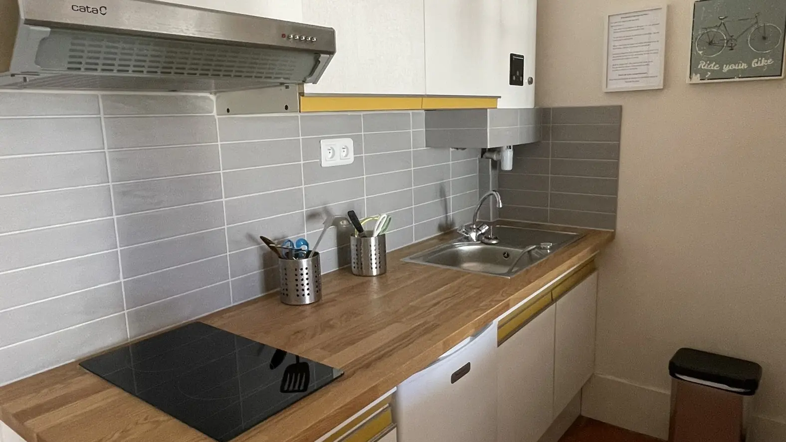 La salle de bains (douche, wc, Lave-Linge) a été refaite à neuf, cuisine américaine équipée (four traditionnel, micro-ondes, congélateur indépendant du frigo, plaque à induction), l’appartement est équipé du WIFI, parking sécurisé dans la résidence.