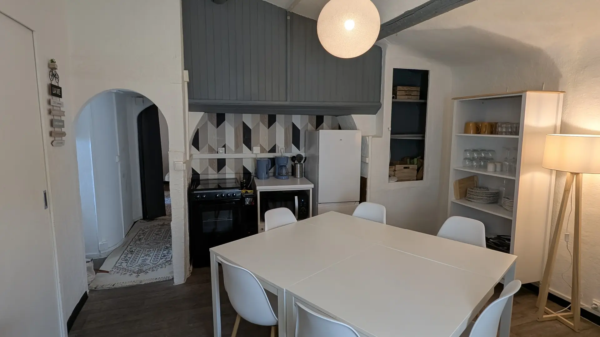 Le logement bénéficie également d'une grande cuisine avec table à manger pouvant accueillir 6 à 8 personnes.