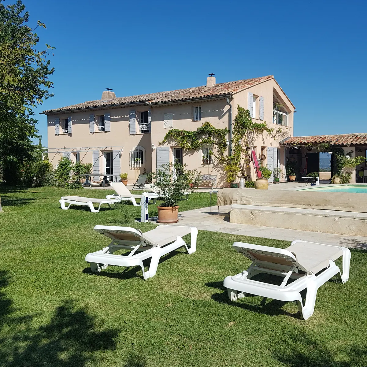 grand mas en campagne avec vue dominante sur le massif du Lubéron et de Sainte Victoire, au calme pétanque barbecue et hamacs...pour 19 personnes maximum