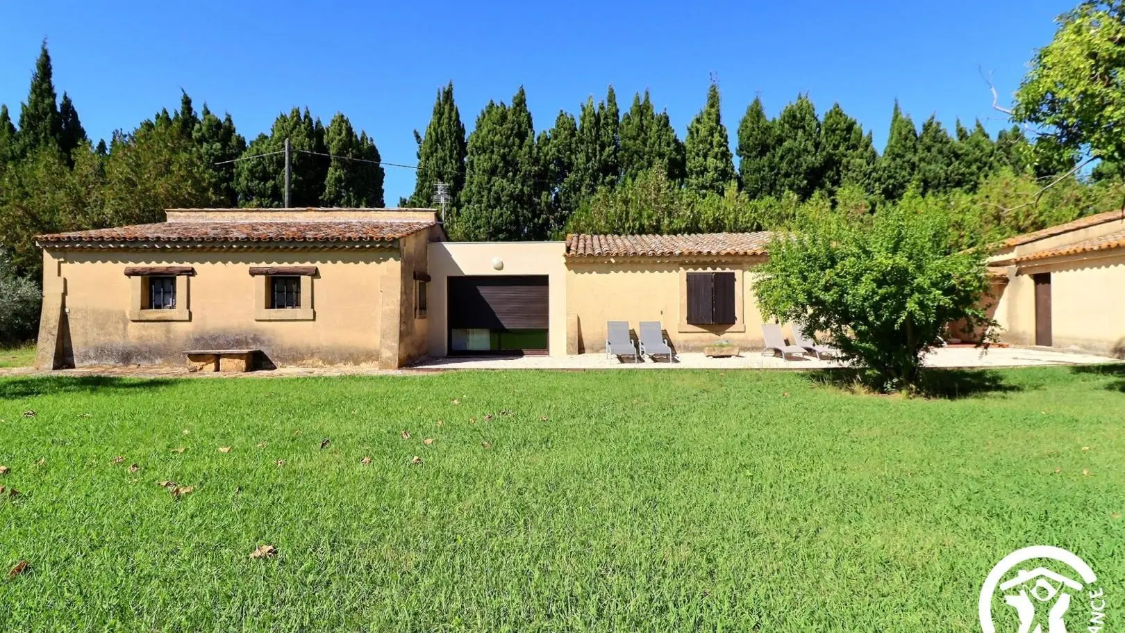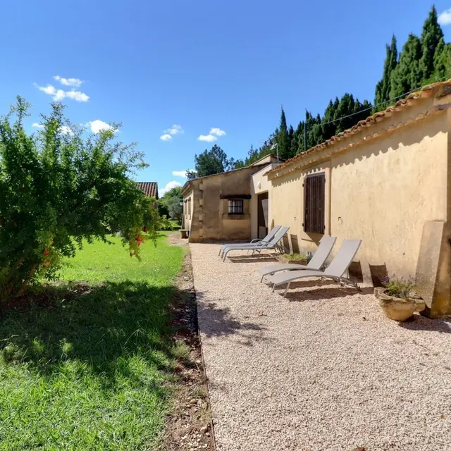En pleine campagne, conçu pour des séjours en famille ou entre amis, propriété agricole proposant 3 gîtes indépendants, "Mas des Capelans 1 (13G503), "Gîte des Capelans 2" (13G509), "Gîte des Capelans 3" (13G621) pour une capacité totale de 20 personnes. Situés au bout d'une piste goudronnée de 1.6 kms, au calme, à proximité de chez le propriétaire. Piscine sécurisée par alarme commune aux trois gîtes (25x12 m, profondeur maxi 2 m maxi en pente douce) du 15/05 au 15/09 jusqu'à 20h30. Le gîte Mas des Capelans 3 est le premier gîte en arrivant sur l'espace "gîtes", et dispose d'un grand terrain ombragé avec salon de jardin, d'une terrasse couverte (avec barbecue plancha gaz) et d'un espace gravillonné avec chaises longues. Entrée par la cuisine/espace repas : cuisine équipée (lave vaisselle, plaques vitrocéramiques, four, micro ondes, frigo/congélateur), espace repas. Salon très lumineux avec grande baie vitrée ouvrant sur l'espace gravillonné avec canapé 1 place et fauteuils, télévision écran plat. 2 Chambres 2 personnes (2 lits 90x200) et (160x200). Salle d'eau privative pour la chambre parentale. Salle d'eau indépendante avec belle douche. Wc indépendant. Buanderie avec lave linge. Wi-fi Chauffage/climatisation (consommation réelle) - lit et chaise bébé sur demande - draps et linge sur demande (en location) - ménage sur demande (80€)