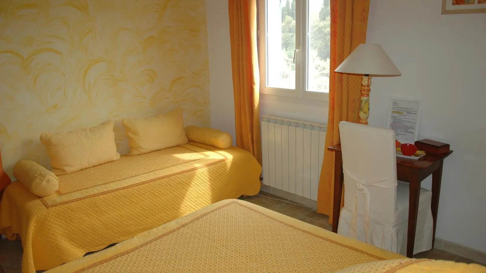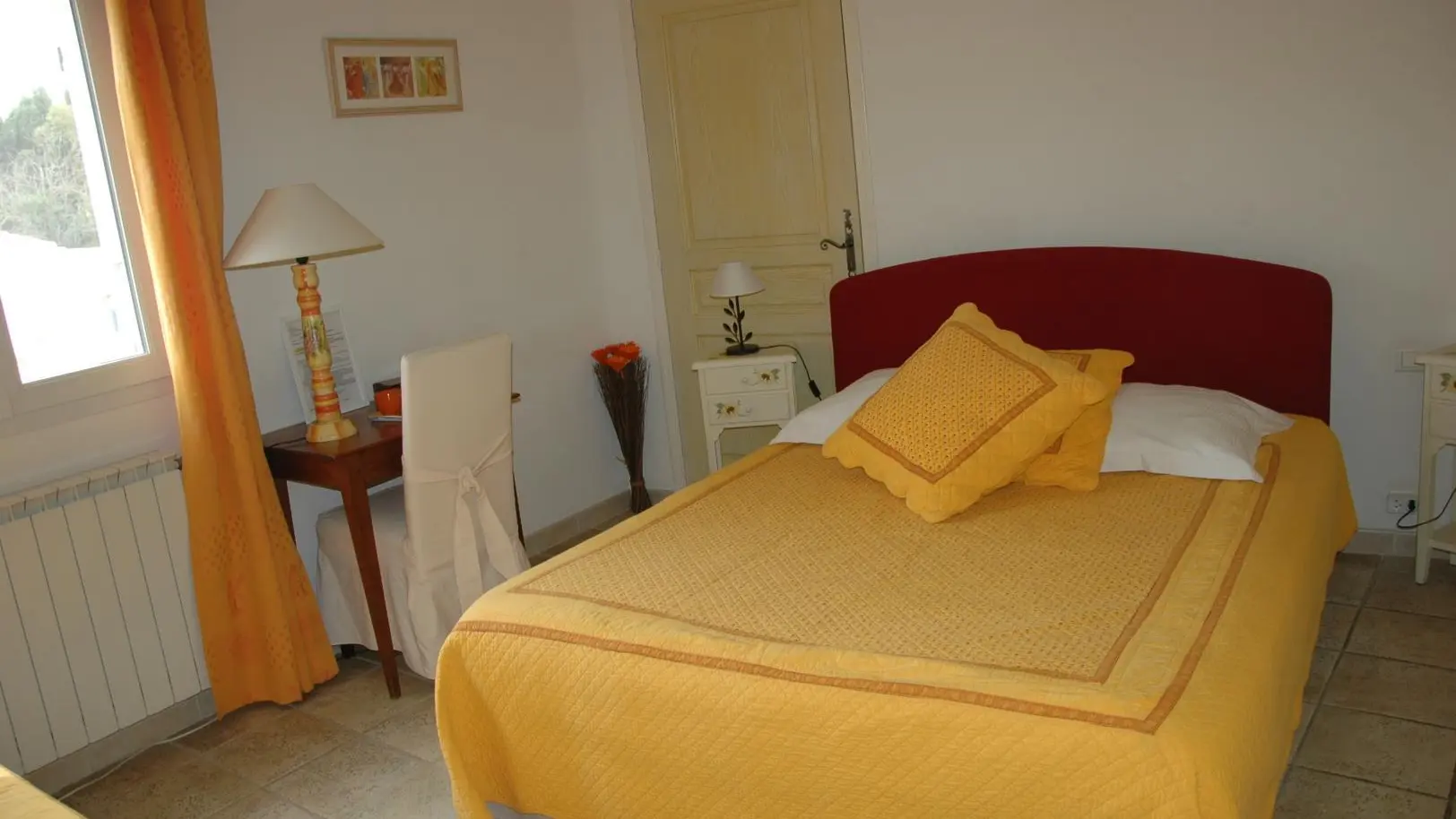 Jacqueline est très heureuse de vous accueillir, chez elle, au Mas des Senteurs en pleine nature et toute l'année depuis 2007. Mes 4 chambres (grands lits 160 ou 180), à l'étage, avec chacune sa salle d'eau : douche et wc, sont chaleureuses, aux couleurs de la Provence et vous feront bénéficier de repos. Dans la chambre Lavande : UNIQUEMENT SUR DEMANDE ET A PARTIR DE 3 NUITS, il est possible d'avoir 2 lits séparés (90 x 200 x 2 lits). Le petit-déjeuner est servi de 8h30 à 9h45, dans ma salle à manger et aux beaux jours, en extérieur, dans ma terrasse couverte. Je suis les consignes sanitaires Covid et le demande à mes Hôtes. ** Lit bébé sur demande. ** Accès gratuit Wi-Fi et nous avons la fibre -. Maison non fumeur. ** NOS AMIS LES ANIMAUX ne sont pas acceptés. ** Terrasse commune de 50 m² avec salon de jardin. **De MAI à OCTOBRE, en extérieur dans le jardin et si le temps le permet, je mets gracieusement à votre disposition : A/ ma CUISINE D'ETE, en extérieur, pour votre en-cas avec frigidaire/congélateur, 2 plaques électriques, micro-onde et ma vaisselle. B/ Accès à notre PISCINE commune (12x6 m). A partir de 2 nuits de 9h à 19h30. Jardin commun de 3200 m². ** PARKING PRIVE et gratuit dans ma propriété. **TARIFS PARTICULIERS : * A compter de 4 NUITEES en HTE SAISON : MAI A SEPTEMBRE = le prix d'1 chambre par nuit pour 2 personnes comprenant le coucher, le petit-déjeuner et la taxe de séjour = 90 €. *D'OCTOBRE A AVRIL = le prix par nuit d'1 chambre de 1 ou 2 personne(s) comprenant le coucher, le petit-déjeuner et la taxe de séjour = 85 euros. ** HEURES D'ARRIVEE ET D'ACCUEIL : UNIQUEMENT de 17 h à 19 h.