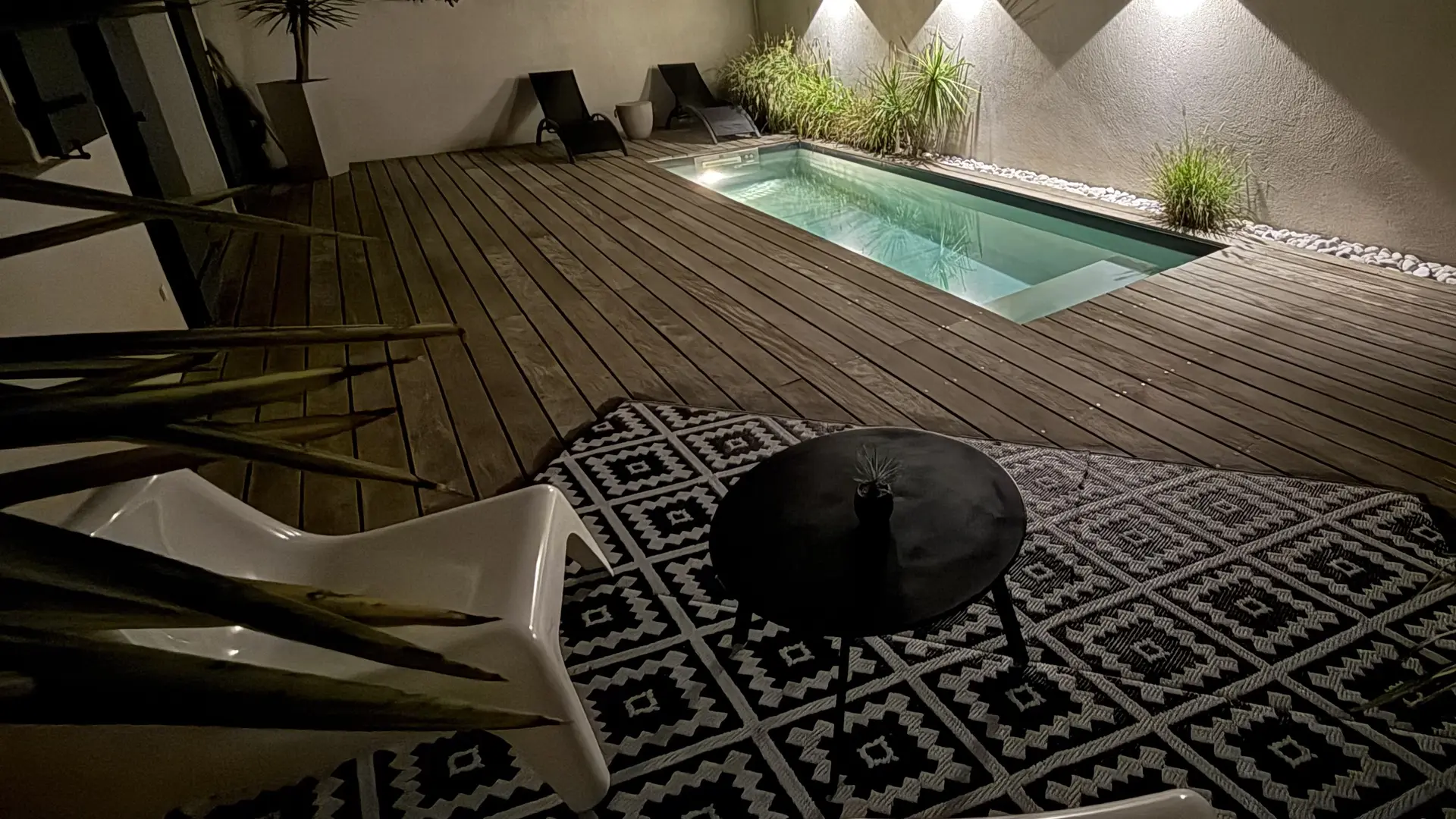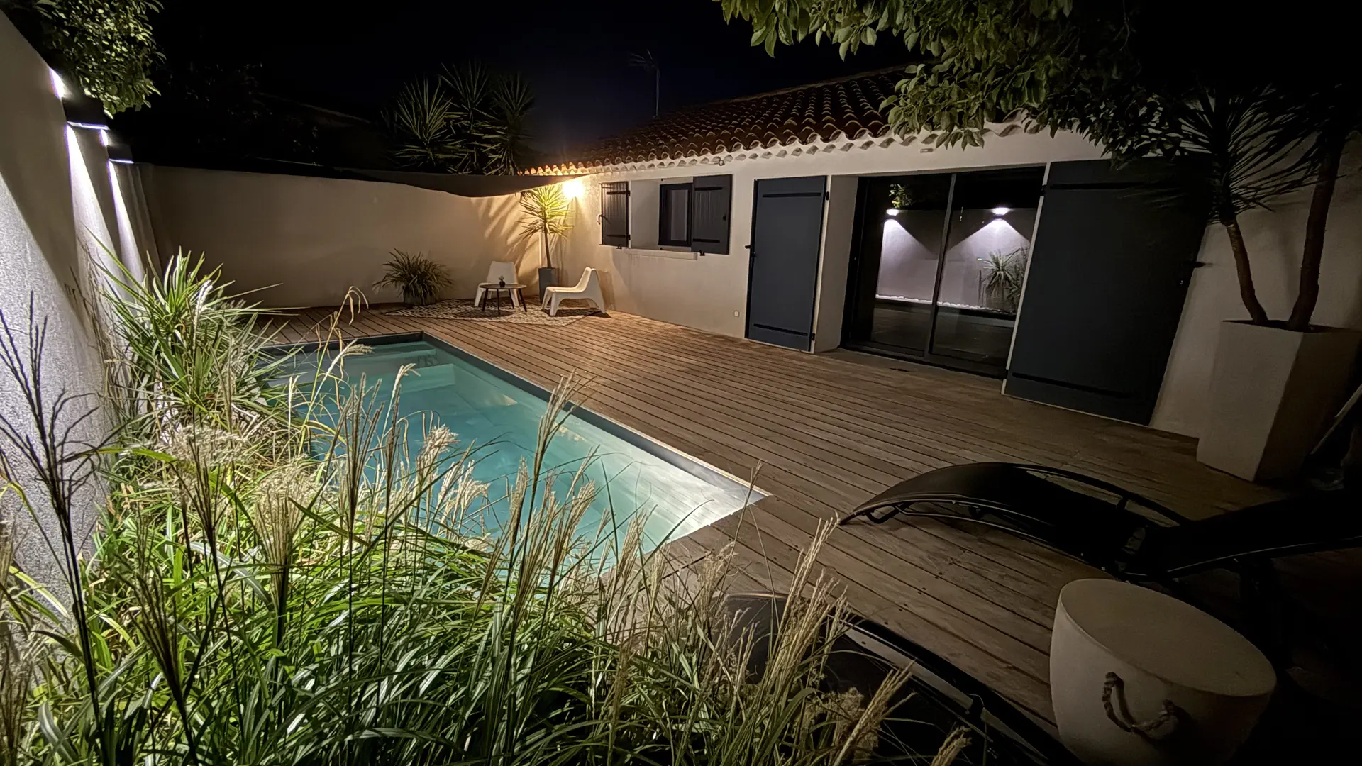 Maison de 60m2 orienté Sud-Est avec sa piscine privée chauffée, entièrement clôturée et indépendante, pour 2 personnes.Une borne de recharge de 11kWh est disponible aussi gratuitement.
