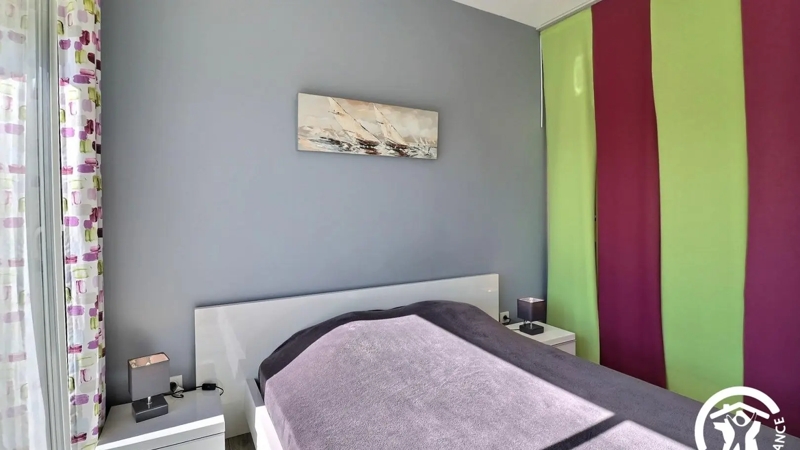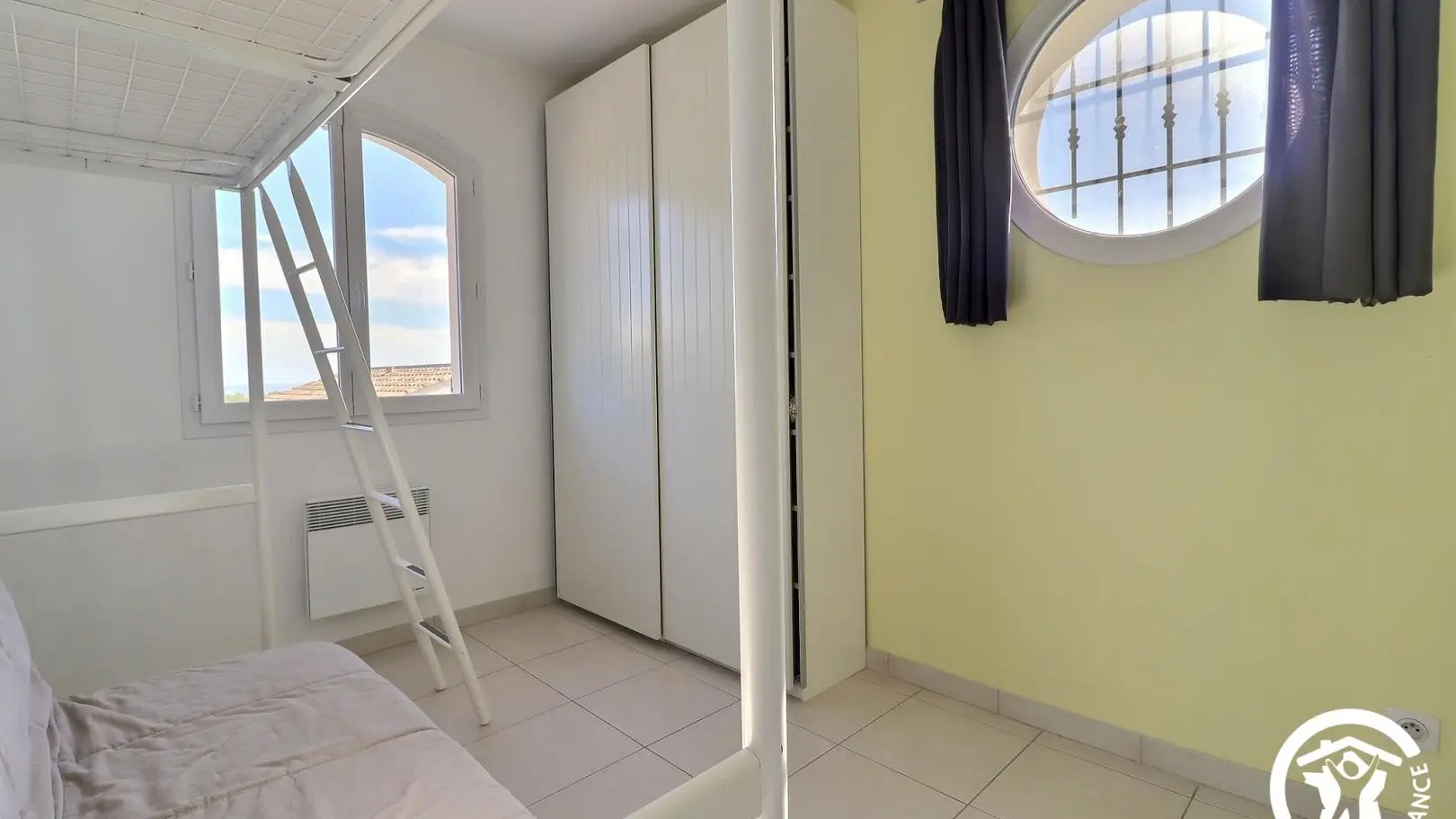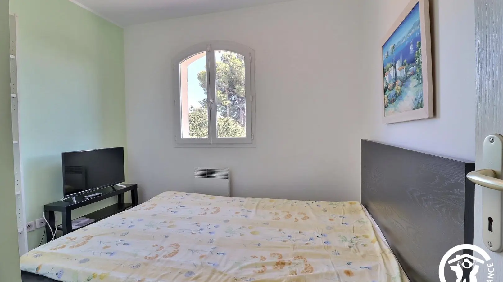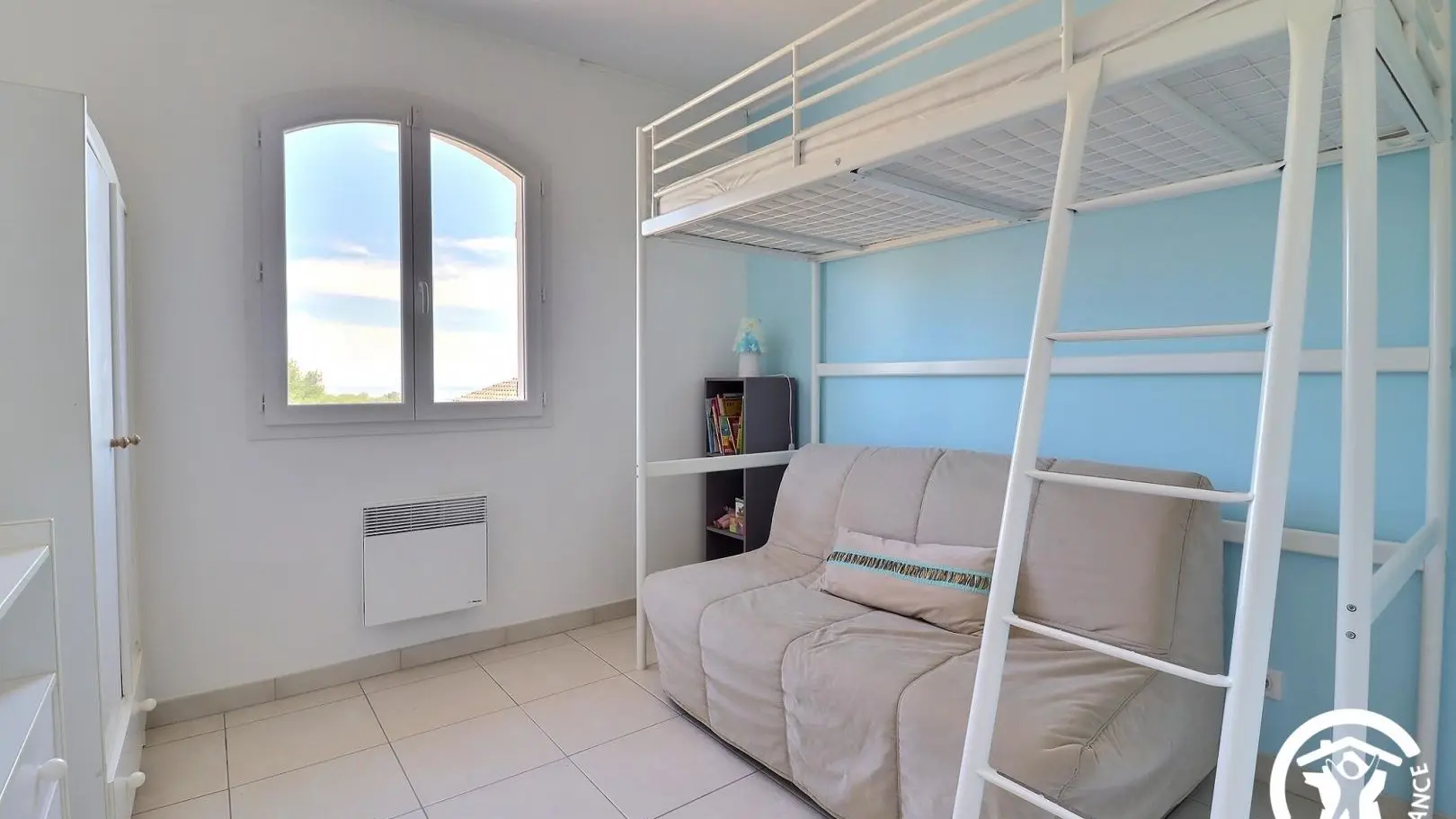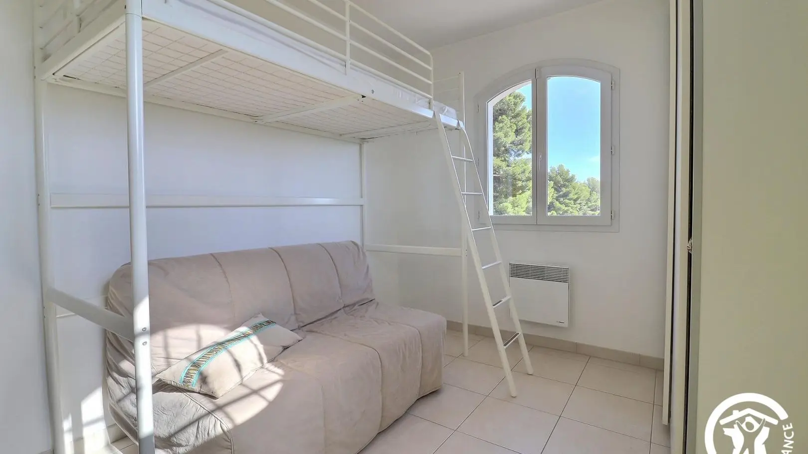 A l'étage, 3 chambres dont 1 avec lit 140x190cm, et 2 avec canapés convertibles et lit simple en hauteur. Les 3 chambres ont vue sur la mer et La Ciotat. Salle d'eau avec douche et rideau, double vasque et sèche-serviettes. WC indépendant. A l'extérieur, le terrain de 1000m² est privatif, il est composé d'une terrasse, d'une piscine sécurisée par alarme, d'un jardin arboré et d'un espace cuisine d'été avec barbecue électrique, évier et réfrigérateur supplémentaire. Draps, linge de toilette et ménage de fin de séjour en option. Animaux autorisés : 1 petit chien ou 1 chat maximum.