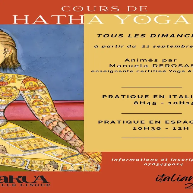 À partir du 21 septembre cours de Hatha Yoga en italien et en espagnol à l'Arca delle lingue, proposée et animée par Manuela Derosas, enseignante certifiée par Yoga Alliance.