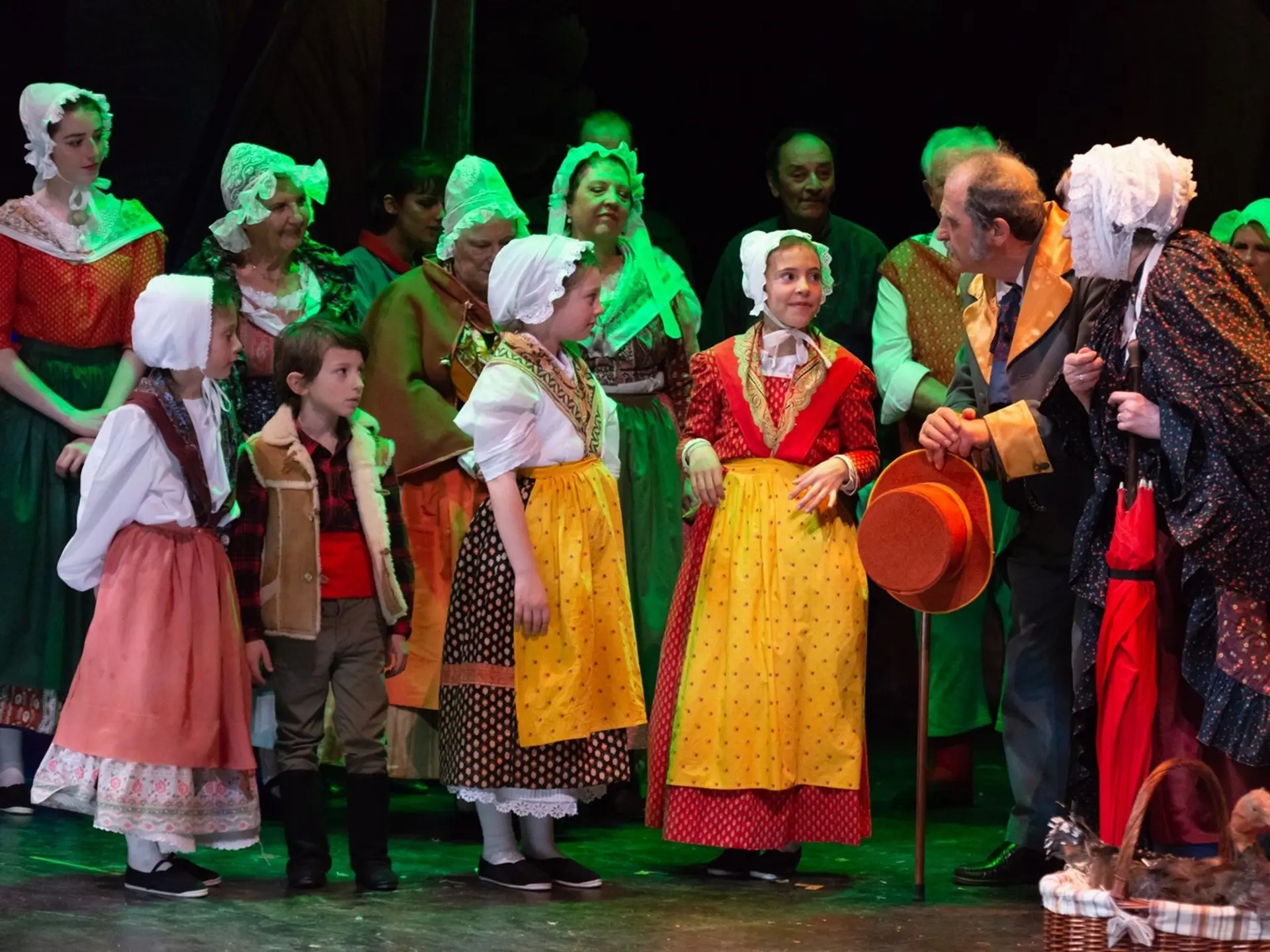 Les comédiens, tous amateurs, portent les costumes régionaux des années 1800-1830, en usage avant que le train à vapeur ne facilite l’acheminement de la mode parisienne à travers nos provinces.