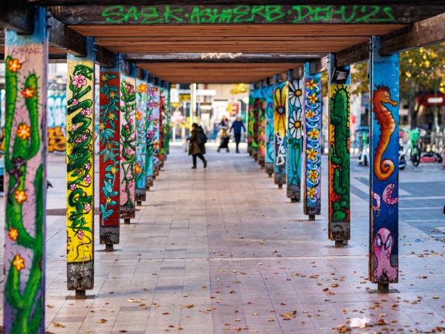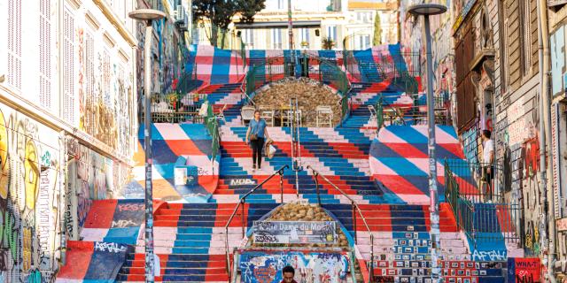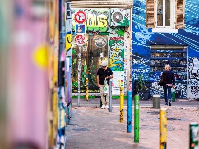 Le Cours Julien, affectueusement surnommé « le Cours Ju » par les Marseillaises et les Marseillais, est un quartier incontournable pour les amateurs de culture urbaine à Marseille. Établi sur les hauteurs de la ville, ce lieu cultive son ambiance bohème et est réputé pour ses nombreux commerces éclectiques, allant des librairies indépendantes aux cafés branchés. Les façades, les murs et les devantures servent de toiles à des artistes talentueux qui composent des fresques murales colorées. Grâce à eux, le Cours Ju s’est transformé en une véritable galerie d’art à ciel ouvert.