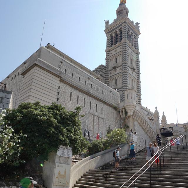 S’il y a une chose à voir à Marseille, c’est bien la fameuse Notre-Dame de la Garde ! Tous les moyens sont bons pour y monter, à pied (compter 20 bonnes minutes depuis le Vieux-Port), à vélo, en bus (N°60) mais l’idéal si vous avez des enfants, c’est avec le petit train touristique, celui-ci se prend sur le Vieux-Port et vous mène directement à la Bonne mère !